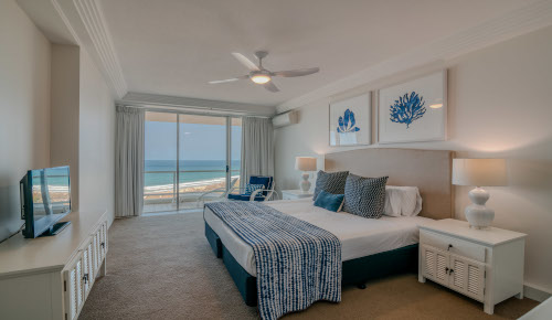 Our stunning Superior 1 bedroom apartments are nicely updated with stylish and tasteful décor and large balconies. Located on levels 9- 16 and equipped with floor to ceiling windows you are guaranteed to get magnificent ocean views from your apartment. These apartments are the same as our two bedroom superior only that we have locked off the second bedroom and bathroom. This allows for large living and dining areas, Our spacious one bedroom apartments offers a large double bed, ensuite bathroom with large spa bath, ceiling fans and air conditioning in the living areas and are suitable for couples or the solo traveller.