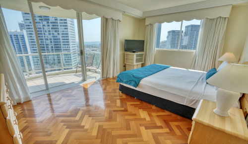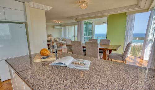 Our spacious three bedroom, two bathroom self-contained apartments are equipped with two large double beds and two single beds, ensuite bathroom with large spa bath and second bathroom with walk-in shower, suitable for families. The beachfront apartments are well presented and partially refurbished. With its 189sqm these corner apartments offers spacious open plan living and dining area with a fully appointed kitchen and large curved balconies with outdoor seating with your own private balcony from the master bedroom. Equipped with floor to ceiling windows and located on level 9-15 these apartments’ offers stunning ocean views from north easterly or south easterly aspects.